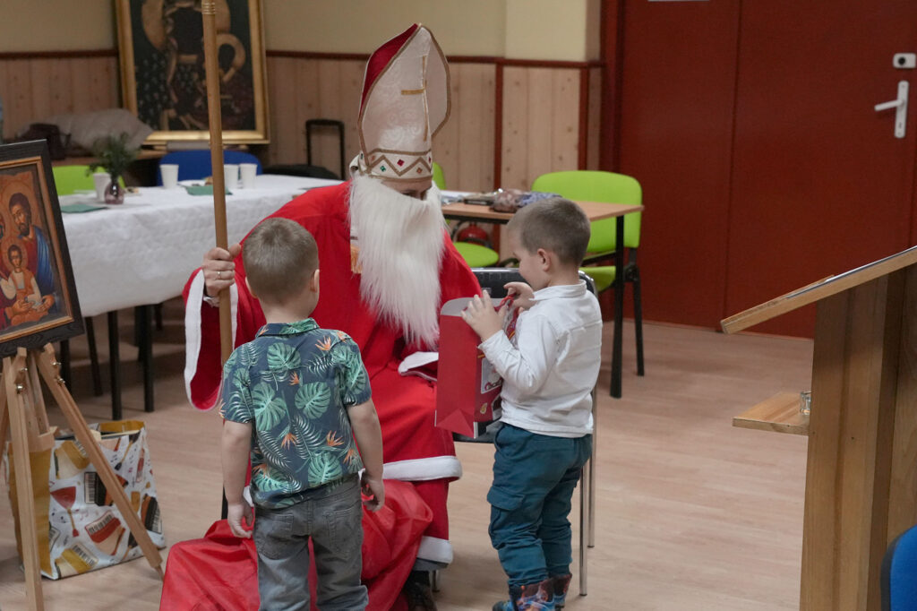 Agapę uświetniło przybycie św. Mikołaja, który wręczył dzieciom drobne upominki.